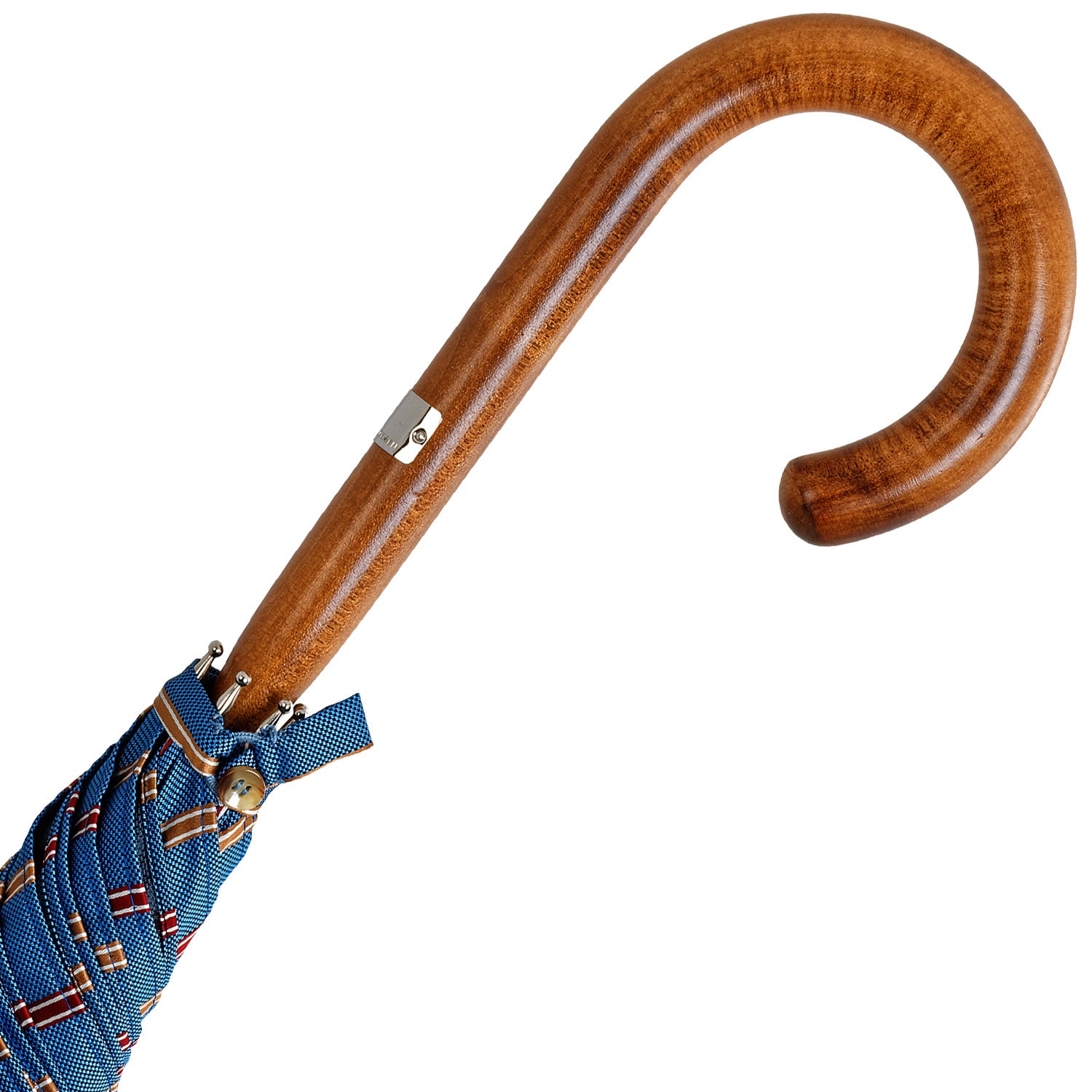 Setzen Sie ein Statement mit unserem Classic Premium Damenschirm, handgefertigt mit einem Stock und Griff aus einem Stück naturgewachsenem kanadischem Ahorn. Der Schirmstock ist nicht aus einem Stück Holz herausgearbeitet, sondern als kleines Bäumchen so gewachsen. Die Krone und die Wurzel des Bäumchens werden entfernt und dann wir der Griff monatelang über Wasserdampf gebogen. Das doppellagige Schirmdach aus extrem dichten Piqué-Gewebe, ist speziell beschichtet, um höchste Widerstandsfähigkeit gegen Regen und Wind zu gewährleisten. Streifen-Dessins sind seit vielen Jahrzehnten ein nicht wegzudenkendes Element hochwerteiger Schirme, weil so kontrastreiche Farben kaum besser und stilvoller verwendet werden können. Auch in der Farbfolge bleu-rot-beige ist das abolute Klassik und passt einfach perfekt zu dem schönen Holz. Die Innenseite des Schirmdachs ist einfarbig.